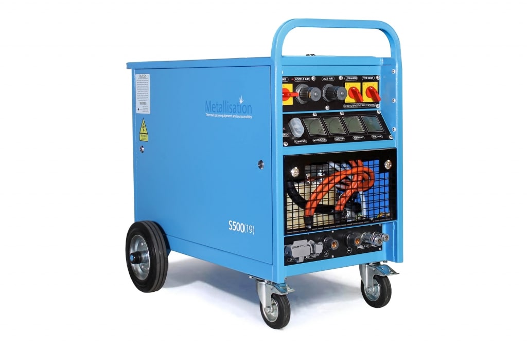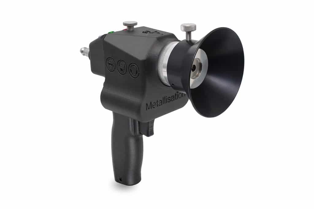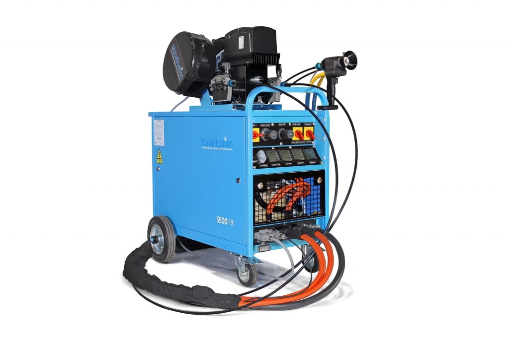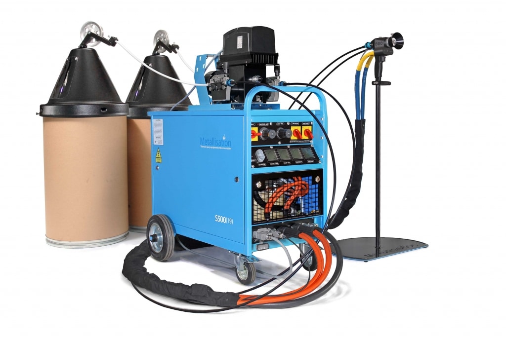 Kompletné zariadenie ARC150P na metalizáciu elektrickým oblúkom, ktoré kombinuje novú metalizačnú pištoľ so systémom „push“ a novým zdrojom 500 A.