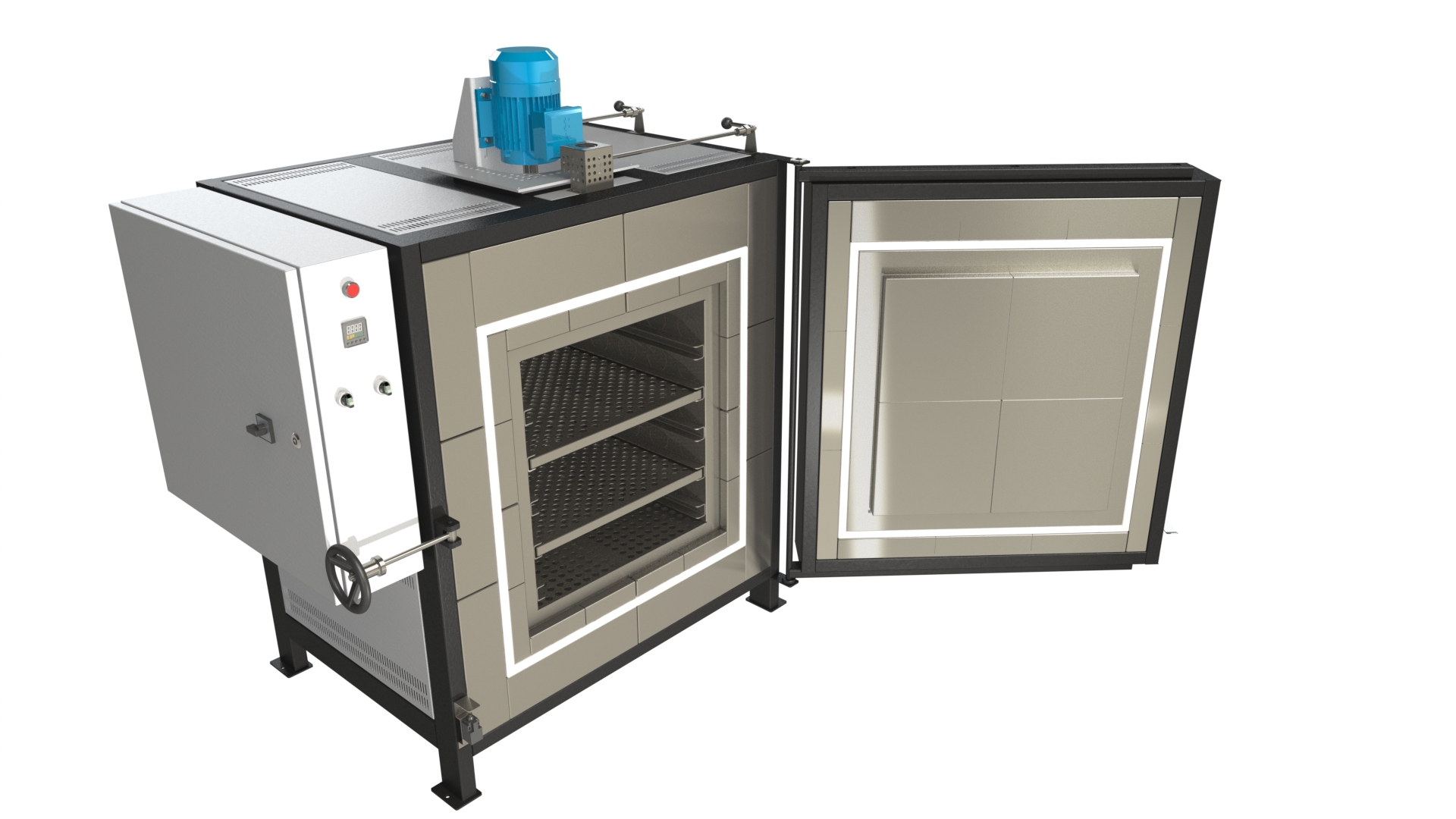 Vysoko kvalitné elektrické priemyselné pece SNOL s indukovanou cirkuláciou vzduchu. Umožňujú ohrev z oboch strán pomocou rúrkových ohrievacích telies.