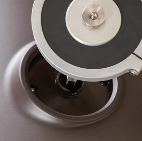 - Rýchlo upínací montážny náboj umožňuje rýchlu montáž kotúča bez potreby poistnej matice, čo má za následok väčšiu vôľu pre podtlakovú zbernú hubicu a väčšiu pozorovaciu plochu pre testovanú vzorku. Pružinová, skosená prídržná matica poskytuje pozitívnu zaisťovaciu silu na priečnom brite náboja kotúča a zaisťuje, že kotúče zostanú bezpečne upevnené, kým sa neodpoja.