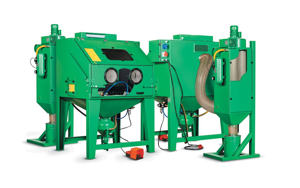 - výhodou kabinetu je vyššia účinnosť pri tryskaní a možnosť využitia takmer všetkých druhov abrazív