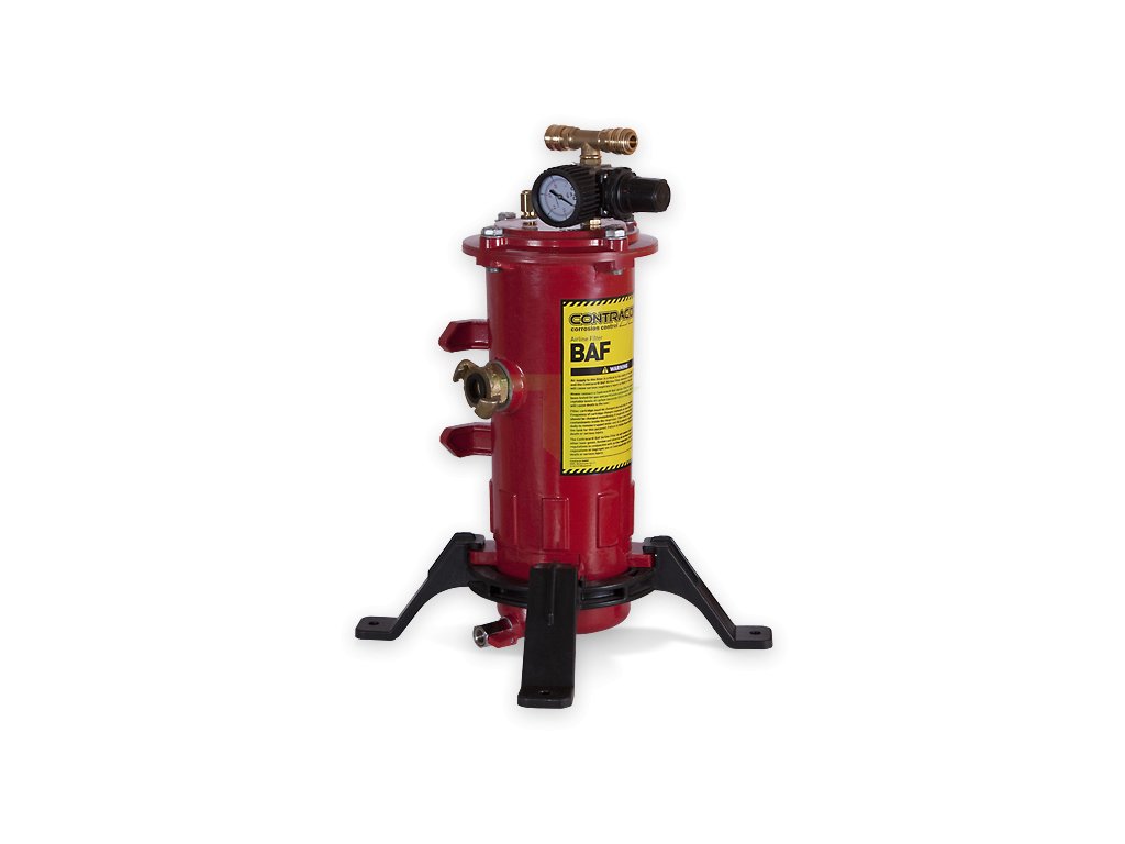 Vzduchový filter BAF-1pre tryskacie kukly je vybavený regulátorom tlaku, bezpečnostným ventilom, vypúšťacím ventilom, manometrom, mosadzným T kusom a prívodnou rýchlospojkou so sponou. Eliminuje až 98 % častíc s veľkosťou až 0,5 mikrónov.